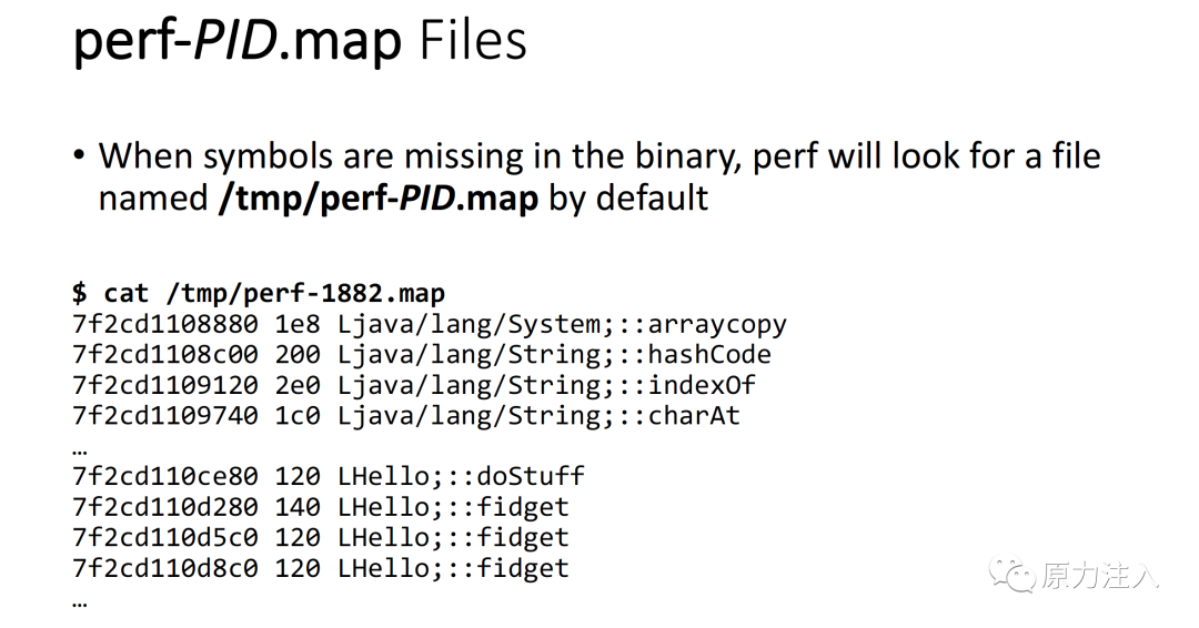 【注意】采样和获取符号表中间有时间差,会导致有些调用栈无法解析。原因是 Java 调用栈太多了,所以执行不同代码的时候,perf-pid.map 会变。
