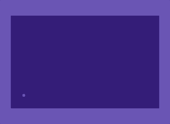 上面的程序充分利用了 Commodore 64 最酷的功能之一。当把不可打印的命令字符作为字符串的一部分传递到 PRINT 命令时,它们会执行其操作,而不是被打印到屏幕上。这允许你重新摆放你程序中打印的字符串。(LCTT 译注:上述程序中如 {CRSR LEFT} 之类的控制字符执行类似 “在行中向左移动一个位置” 的操作,因此上述程序中利用这些字符操作了一个圆点字符四处移动,如下图。)