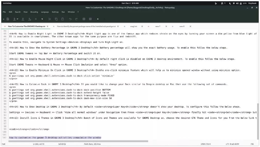 GNOME 3 默认用 Sun 04:48 的格式来显示日期和时间。它并不清晰易懂,如果你想获得以下格式的输出:Sun Dec 2 4:49 AM ,遵循下面的步骤。