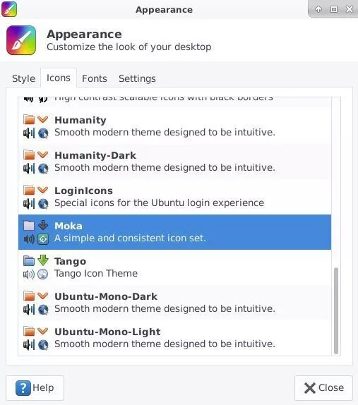 Xfce-look.org 也提供你可以下载的图标主题,提取并放置图标到你的家目录中 .icons 目录。在你添加图标主题到 .icons 目录中后,转到 设置 > 外观 > 图标 来选择这个图标主题。