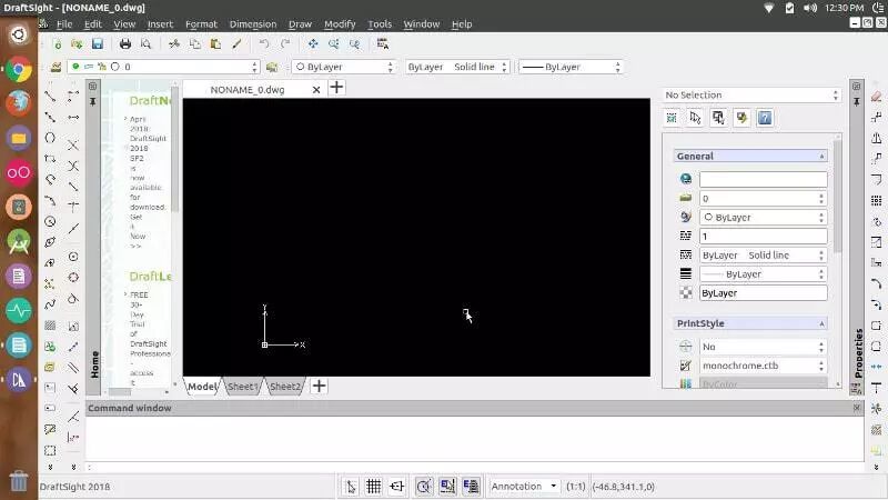 DraftSight 是一个在 Linux 上可用的极好的 CAD 工具。它有相当类似于 AutoCAD 的工作流,这使得迁移更容易。它甚至提供一种类似的外观和感觉。DrafSight 也兼容 AutoCAD 的 .dwg 文件格式。但是,DrafSight 是一个 2D CAD 软件。截至当前,它不支持 3D CAD 。