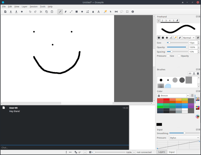 Drawpile 是一个有趣的开源绘图应用程序,在该程序中,你可以与其他用户实时协作。确切地说,你们可以单个画布中同时绘制。除了这个独特的功能,它还有图层支持、记录绘制会话的能力,甚至还有与协作用户进行交互的聊天功能。