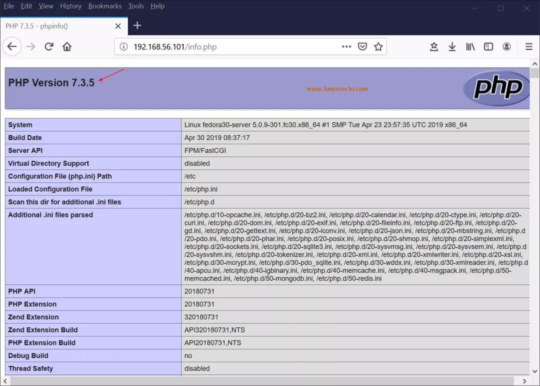 [root@linuxtechi ~]# echo "<?php phpinfo(); ?>" > /usr/share/nginx/html/info.php