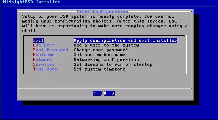 在接下来的窗口中,当出现提示时,选择 “No”,接下来系统将重启。在 MidnightBSD 重启后,你已经为下一阶段的安装做好了准备。