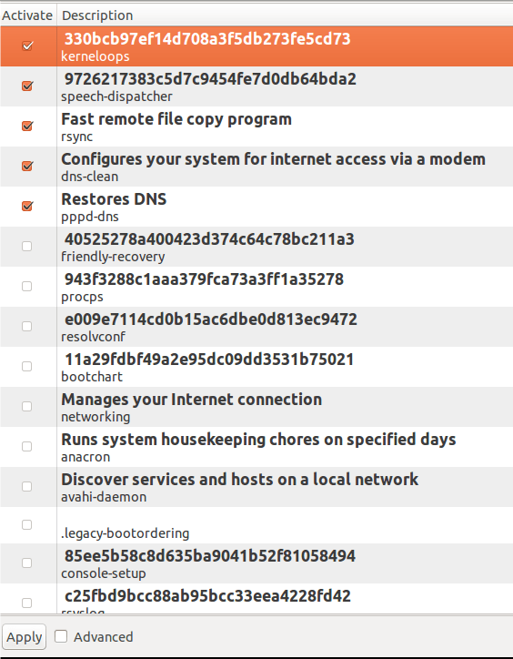 BUM 是一个运行级配置编辑器,允许在系统启动或重启时配置初始化服务。它显示了可以在启动时启动的每个服务的列表。用户可以打开和关闭各个服务。BUM 有一个非常清晰的图形用户界面,并且非常容易使用。