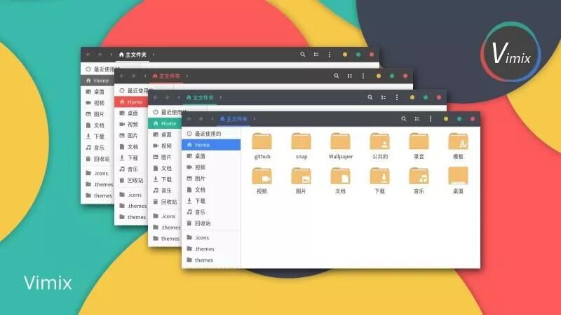 这是一个让我激动的主题。它是现代风格的,吸取了 macOS 的红黄绿按钮的风格,但并不是直接复制了它们,并且减少了多变的主题颜色,使之成为了大多数主题的独特替代品。它带来三个深色的变体和几个彩色配色,我们中大多数人都可以从中找到我们喜欢的。