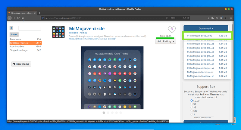 在这篇文章中,我将使用 “McMojave-circle” ,你可以随意使用任何你喜欢的图标。