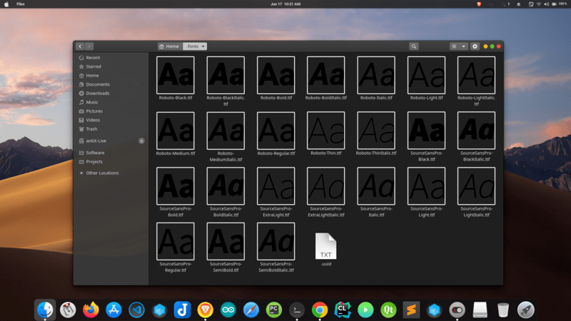 如果你想节省时间并一次安装所有的字体,提取其中所有的字体到你的家目录(~/.fonts)下的 .fonts 目录中。