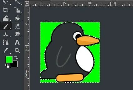 要准备一个专门为色度键保留明确颜色的图形,在你最喜欢的图片编辑器中打开图片。我建议使用 GIMP 或 Glimpse,但是 mtPaint 或 Pinta,甚至 Inkscape 也能很好地工作,这取决于你的图像的性质,以及你将这些操作指南转换到一种不同图片编辑器工具的能力。
