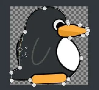 在图片打开后,转到 窗口 菜单,选择 可停靠对话框 ,接下来选择 图层。在 图层 面板中 Tux 图层上右击。从弹出菜单中,选择 Alpha 到选区 。如果你的图像没有内置的 alpha 通道,那么你必须手动创建你自己的选区。