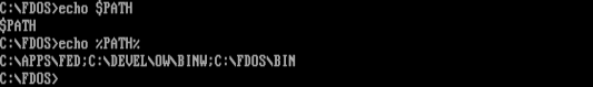在 FreeDOS 上,环境变量提供一种类似的功能。一些变量控制 DOS 系统的行为,另一些变量用于存储一些临时值。