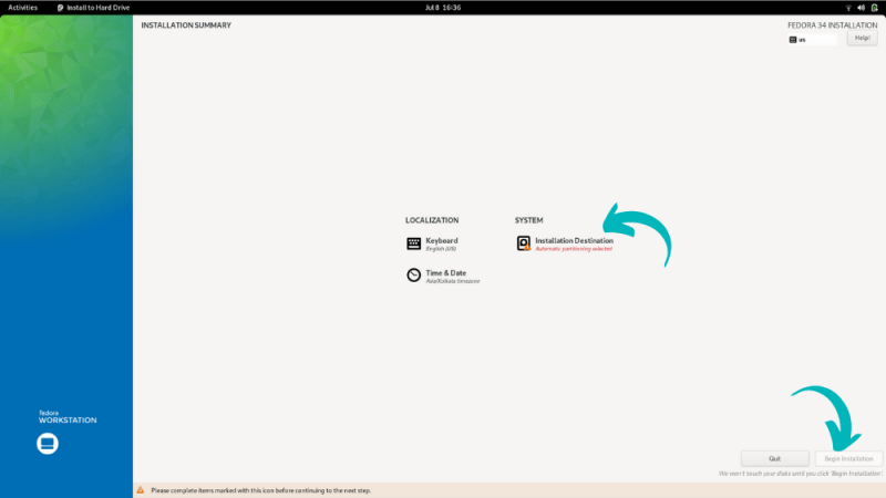 在这以后,将出现 “开始安装(Begin Installation)” 选项,开启安装过程。