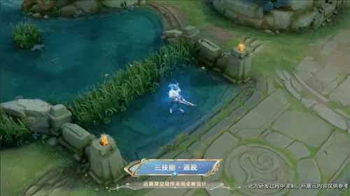 距离敌人一个闪现以内时,利用普攻来校准面朝方向瞬间点2技能,随后再衔接3技能拉开距离。