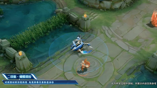 释放三技能时以自身为中心生成蓝色光波,战场变为了一个电竞赛场的舞台。
