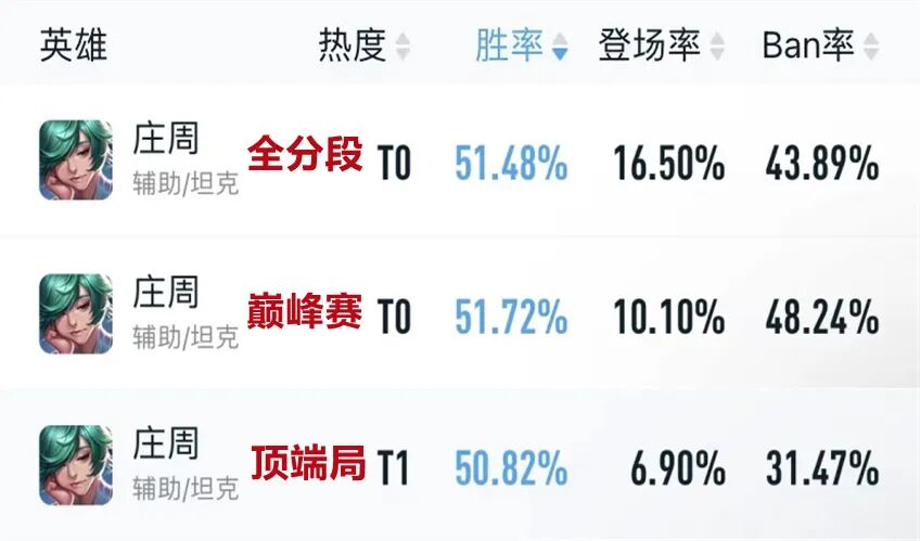 在一个“控制当道”的版本中,庄周大招的群体解控变得尤为稀缺,只要一个大招就能让敌方的开团无功而返,这就是庄周在各个分段胜率表现都非常优秀的原因。
