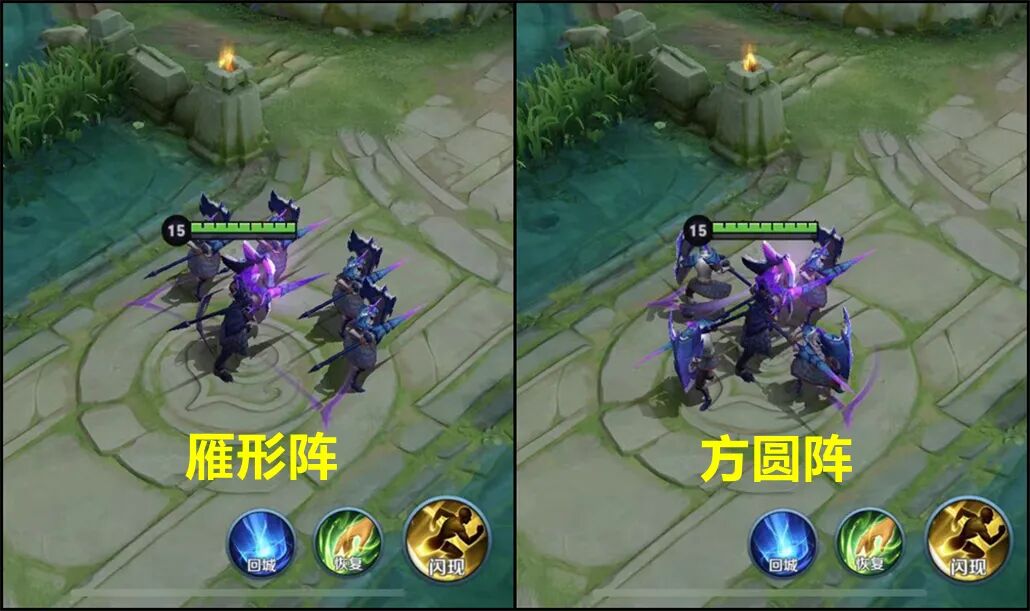 这种阵型可以更好的分隔战场阻挡正面伤害,并且小兵的正面伤害覆盖更集中,实战中主要采用雁形阵即可。