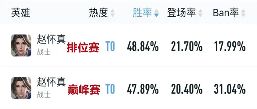 赵怀真这个数据证明强度是绝对在线的,随着玩家熟练度的提升,后面胜率也会不断走高。