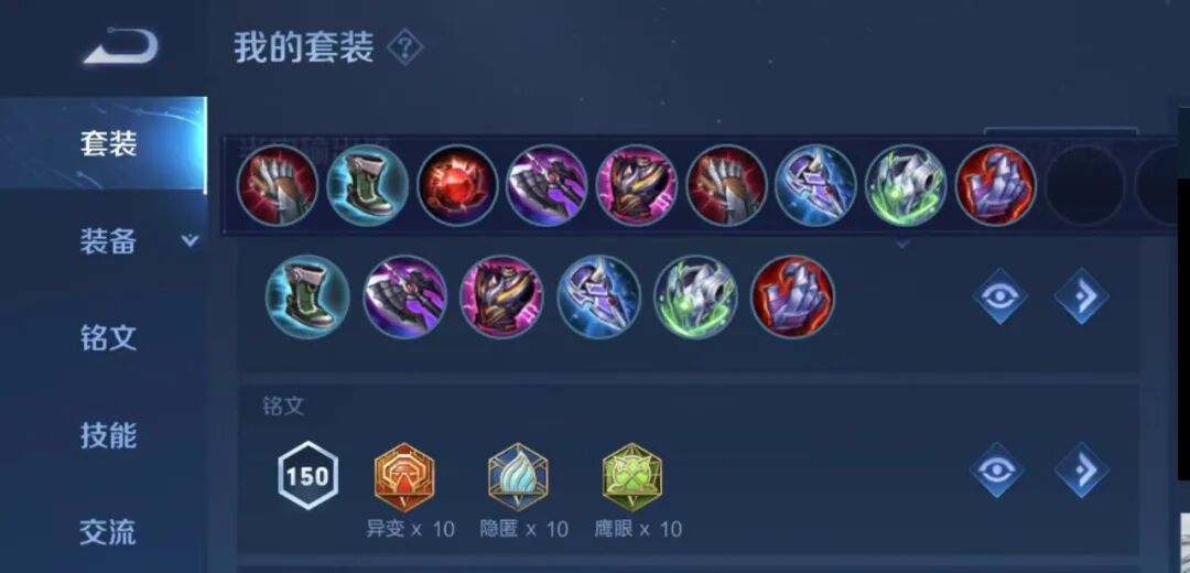 铭文推荐:10异变、10鹰眼、7隐匿3夺萃
