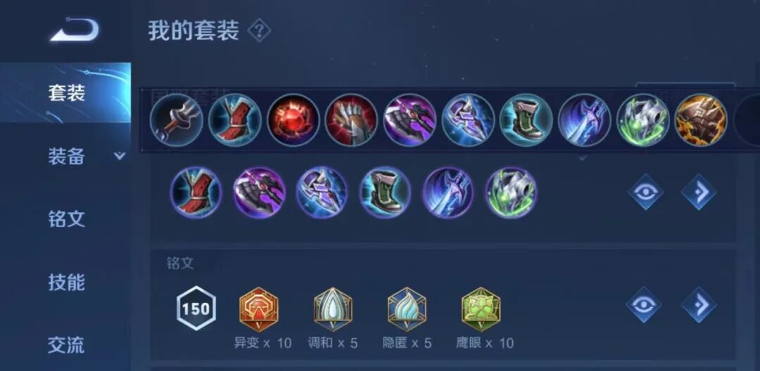 铭文推荐:10异变、10鹰眼、5隐匿5调和