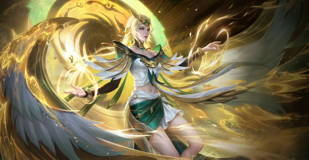 海月-金乌负日是一款传统东方神话主题的皮肤,配色上以华丽的金色和古朴的青铜绿色为主,海报和局内建模颜值相当高。