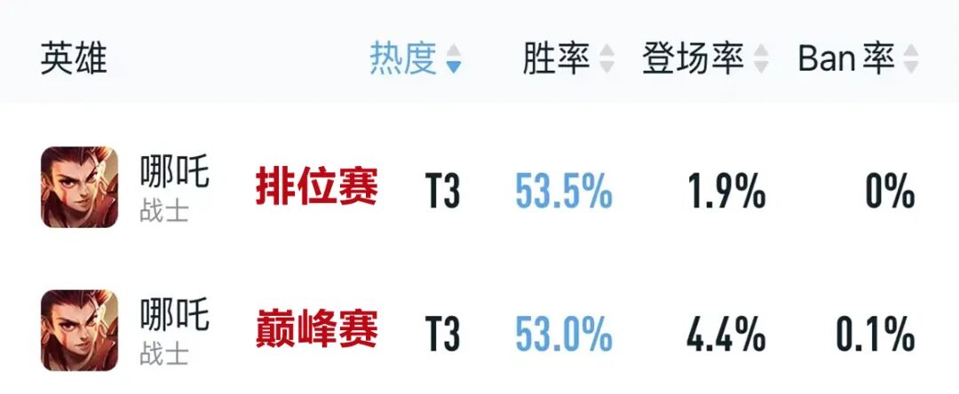增强后哪吒排位胜率和巅峰赛胜率均超过了53%,目前关注到哪吒的玩家还不多,大有再次成为上分密码的势头。