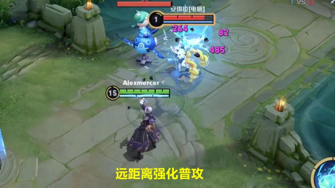 打近战英雄多用远距离强化普攻,可以利用手长的优势无伤拉扯消耗。