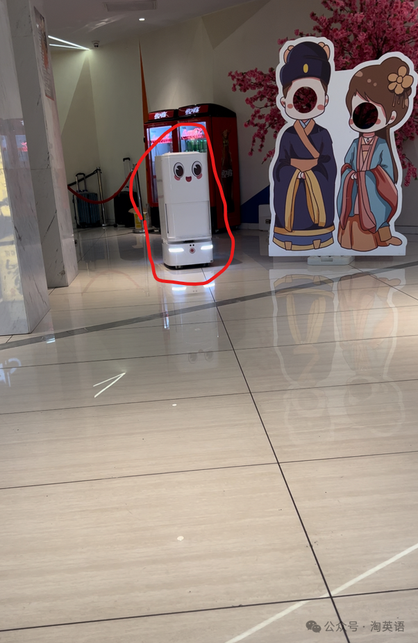 我忘记说中国酒店里的机器人了。在西安,接待处也有3个机器人。都是女性和女性的生意。她们给房间送餐,这太疯狂了。你点餐后,工作人员会把食物放进机器人的肚子里,工作人员会输入指令给机器人,然后在没有工作人员的干预下,机器人会,通过网络呼叫电梯,进入电梯并通过wifi选中要到达的楼层,然后到您的房间,通过网络按响您的门铃。
