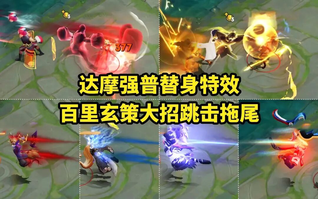 王者荣耀最近对一些英雄进行了特效调整,首先就是达摩的全皮肤,都会新增一个替身攻击特效。就是当达摩释放技能的时候,会有达摩的残影出现哦,尤其是拳王皮肤在释放技能的时候,这个替身攻击简直是帅炸了有木有?除此之外,王者荣耀还将百里玄策的全皮肤进行调整。