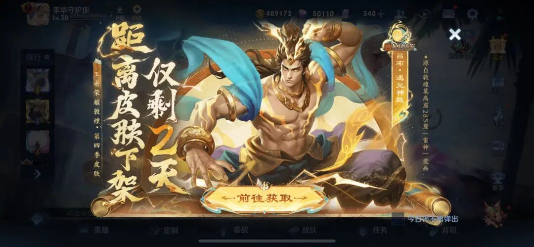没错,王者荣耀30号的时候,会迎来吕布的限定皮肤遇见神鼓下架哦。要知道,这是王者荣耀和敦煌的第四款联动皮肤,此前像杨玉环遇见飞天,还是瑶妹遇见神鹿,或者是貂蝉遇见胡璇,都是让玩家赞不绝口。而在吕布的遇见神鼓上架之后,该皮肤的手感和模型特效,更是深受玩家喜欢哦。