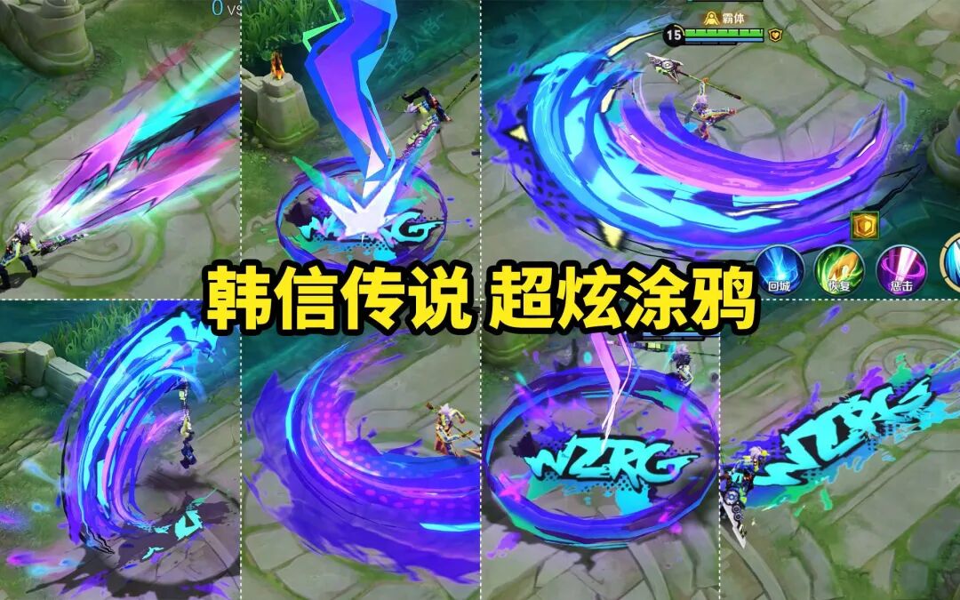 可以看到,韩信这款涂鸦皮肤特效,跟KPL限定是有些相像,但一二技能的特效,更像婉儿的KPL皮肤有木有?尽管如此,跟弑枪猎影的典藏皮肤相对比,韩信这款涂鸦传说真的超炫啊,尤其是这个特效,简直完胜典藏啊,你们认为呢?