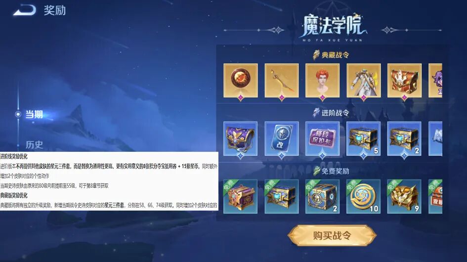 前面说到了王者荣耀战令系统,想必玩家们都应该挺期待新版战令有什么区别吧?我们先来说,王者荣耀新版战令系统重,进阶版是移除了星元套装的。