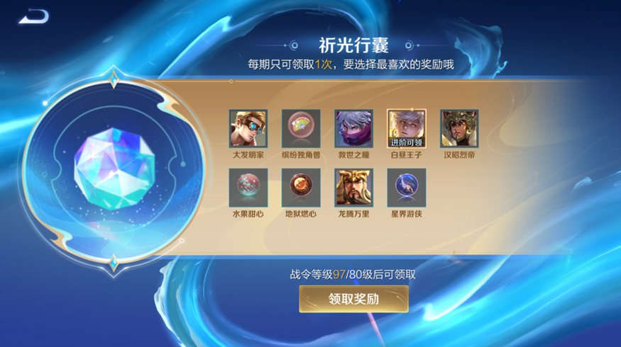 同时,王者荣耀战令系统中,这次还会新增一个很好玩的道具,那就是祁光臻宝了。玩家活动祁光石就能有机会获得永久史诗皮肤奖励,另外达到80级之后,能够领取一个祁光行囊。