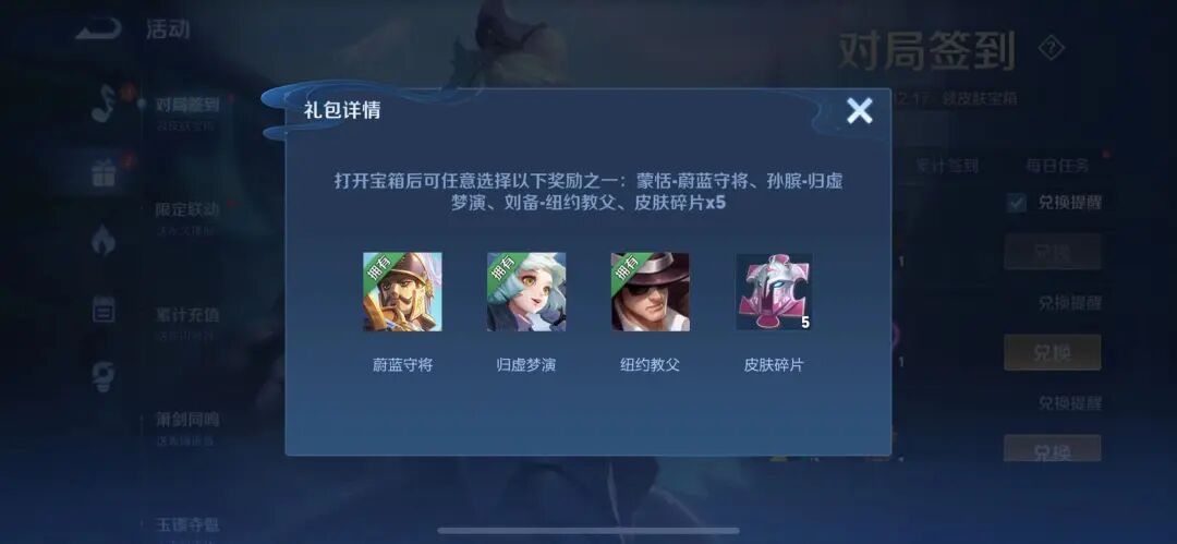 另外一方面,王者荣耀在这周上架的活动中,除了两款新皮肤之外,其实有一个良心活动,不知道玩家们发现了没有?没错,就是免费勇者皮肤3选1,需要玩家每天登录游戏,并且完成对局任务,就能获得钥匙。