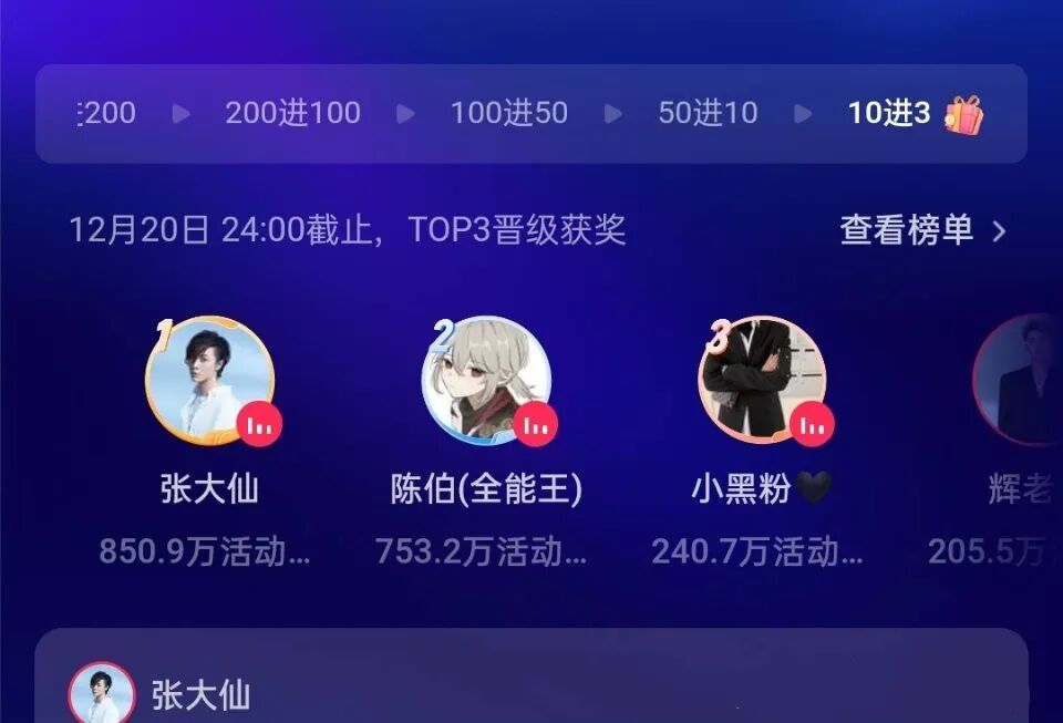 相信粉丝玩家都知道,即使是在以前的平台直播,张大仙对于这种榜单的活动并不感冒。即使是有参加的游戏榜,张大仙每次都能拿个第一。而这次,是张大仙来到音符的首个打榜活动。所以,张大仙只能选择参加,也仅仅是略微出手,就是这个分段的巅峰啊。