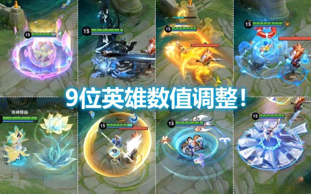 这次体验服的调整一共是有九位英雄,其中李白的调整是增强的,大招侠客行改为积累剑气就能保持大招持续开启哦。而大乔的话,二技能没有传回队友会缩减50%的冷却时间,大招基础伤害降低,四技能的专精范围缩小到550码哈。王昭君的被动伤害降低,一二技能伤害增加,但是全技能的冷却时间增加。同时,王昭君的大招前期伤害降低,后期平调哈。