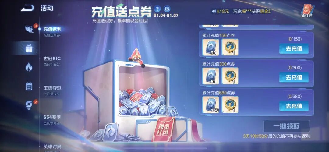 相信很多玩家都知道,王者荣耀新赛季是玩起来新花样,那就是充值送点券。以前是返利,这次是直接到指定档位的话,玩家可以领取点券哦。只要是680点券的档位,那么玩家就能一次性获得230点券。