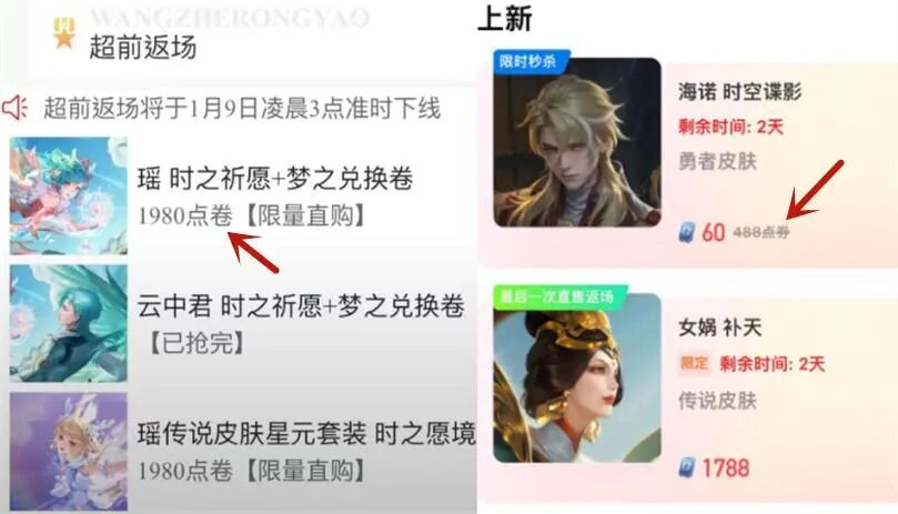 在该消息一出的时候,就有不少玩家询问这是真的价格,甚至有玩家直接跑到王者荣耀商城中查看,但依旧没有发现这三款限定皮肤。在经过几次对比之后,玩家们终于是发现了猫腻。没错,瑶妹和云中君的时之祈愿,甚至是瑶妹的星传说,价格都是1980点券。