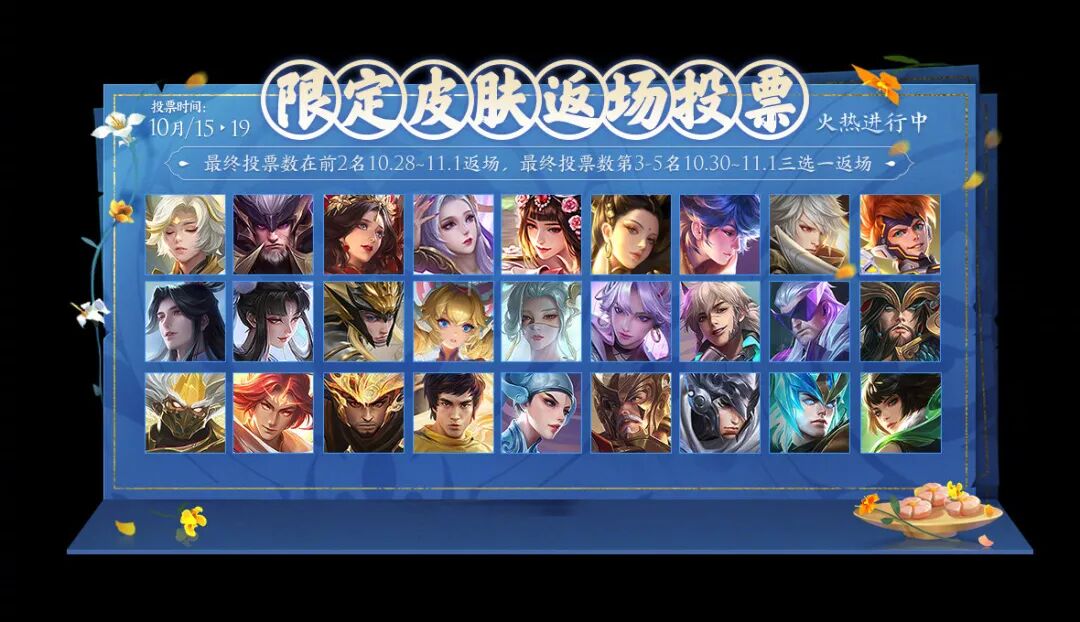 除此之外,王者荣耀在十月份中旬的时候,就会有限定返场投票哦。当然了,根据王者荣耀的更新惯例来看的话,15号返场投票开启,而且最近也是流出了妲己和瑶妹至尊皮肤优化的消息哦。