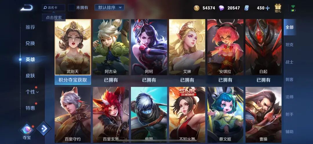 王者荣耀英雄商城
