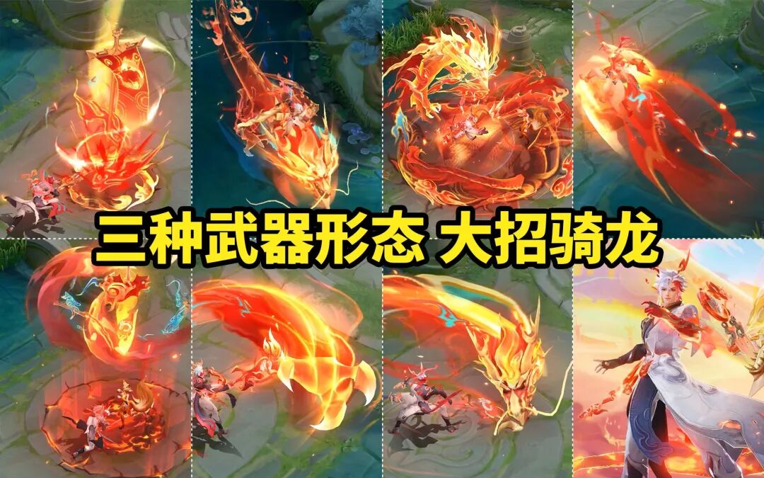 由于赵云改版之后被动拥有不同的状态,所以在赵云残血情况下,会有一条金龙绕身哦。同时,赵云年限二技能拥有蓝色和金色两种不同的打击特效,跟孙尚香一样,全技能都拥有龙的元素哦。
