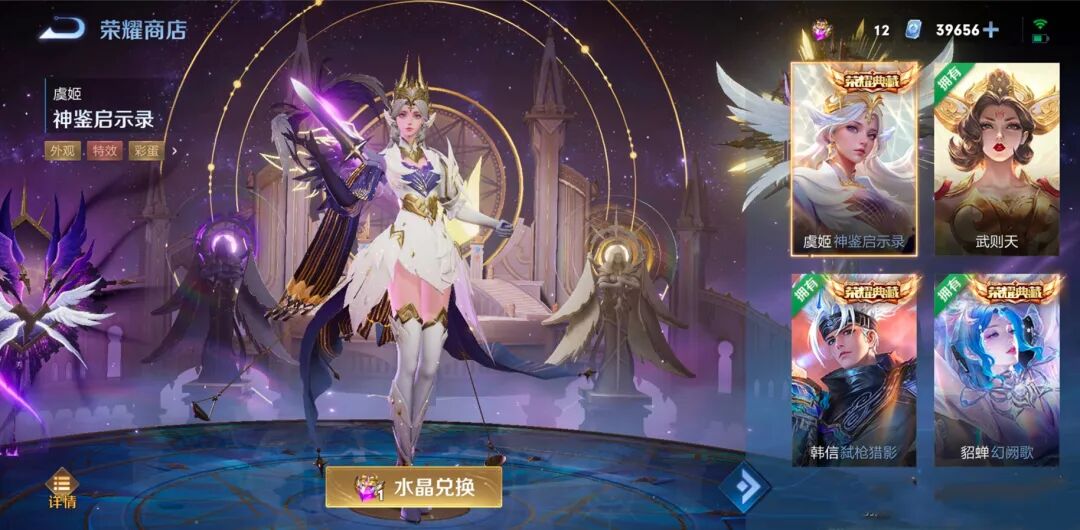 可能,有很多玩家会问,要是抽到荣耀水晶的话,该兑换谁呢?其实呢,荣耀水晶商店里面的皮肤已经多达十多款了,但只有武则天是属于氪金英雄。所以个人认为还是首选武则天吧,然后才是虞姬这款神鉴启示录皮肤哦。当然了,很多玩家都会兑换铠皇的银白咏叹调皮肤,毕竟是有双形态的典藏啊。各位玩家们,你们在这次荣耀三倍概率都有抽到水晶吗?记得有什么想说的话,在留言区跟我交流沟通哈。
