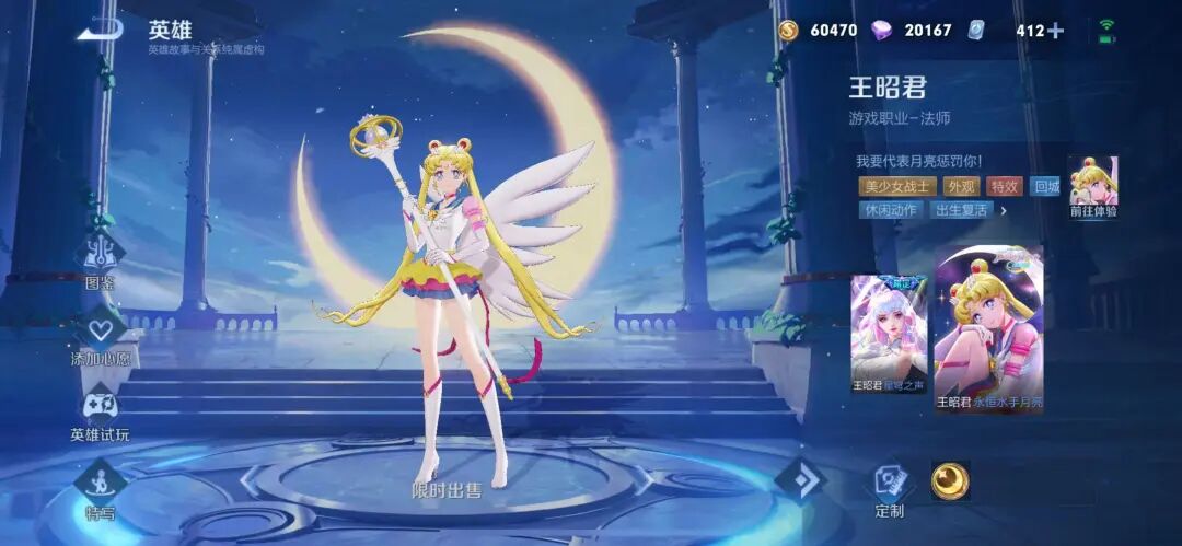 如果说,王者荣耀对于一些限定皮肤,是有返场计划的话。那么,王者荣耀对于美少女战士皮肤,则是没有任何的返场时间的。没错,去年王者荣耀联动美少女上架了王昭君和狄仁杰的假面传说皮肤,已经是下架了哦。
