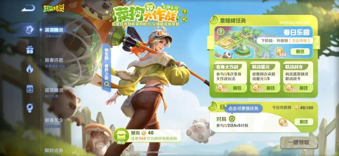 其实呢,王者荣耀连着两个星期上架免费新皮肤,是可以理解的。毕竟,王者荣耀龙年春节上架了17款新皮肤,也是时候让玩家缓一缓了。而沈梦溪的活动还没结束,这又上架了钟无艳的春野之旅勇者皮肤。因为变身大作战模式的归来,王者荣耀也是联动蔬菜精灵,推出了三款新皮肤。
