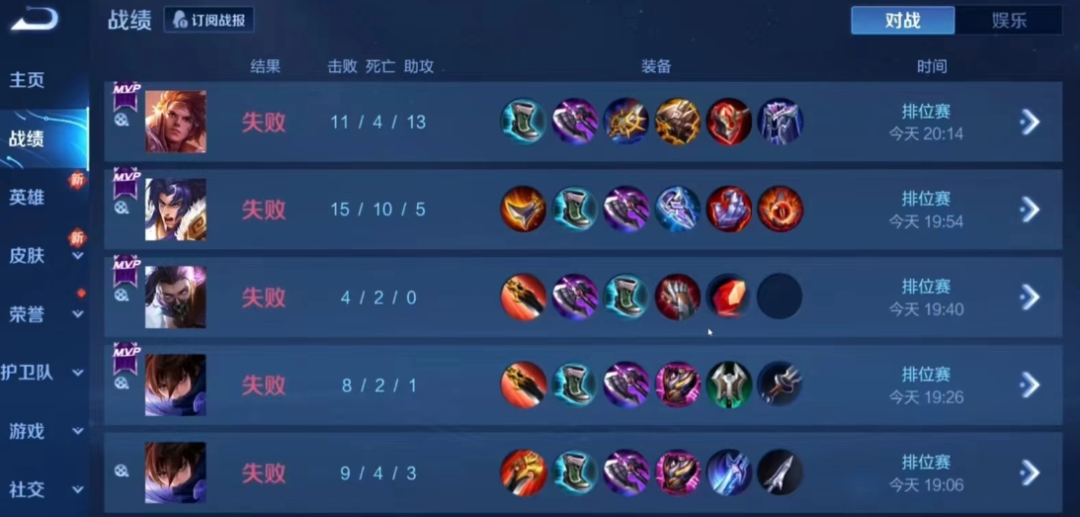 而王者荣耀也是送了回归礼包,里面是钻石、双倍金币卡和英雄体验卡哦,可以说是无关痛痒的。毕竟,老玩家回归的主要目的,是想要获得永久皮肤啊。所以,这位老玩家回归首日就进行了排位赛,没想到遭遇了5连败。