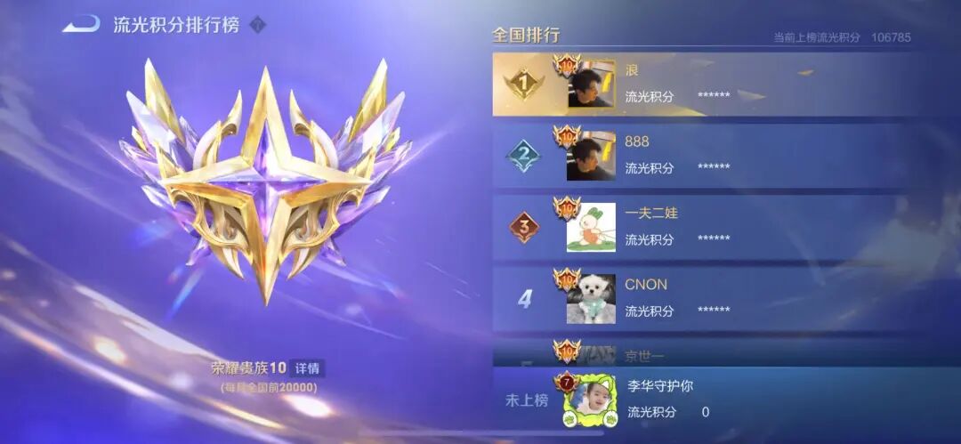 其实,屏蔽的主要目的,就是为了不让玩家产生互相攀比的心理。如果你要问这个流光积分榜单是多少分就会屏蔽,这位“888”神豪玩家给出了答案,那就是“500W”积分哦。