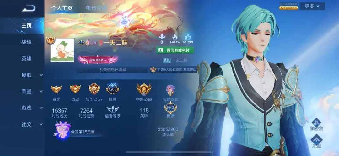 我们可以看到,这个国服第1恋人的玩家主页,可以说是非常豪华的了。虽然皮肤只有563款,但是她的灵宝成长值有5505W啊,也就是当初灵宝系统在的时候,就累充了55W左右,不愧是神豪啊。