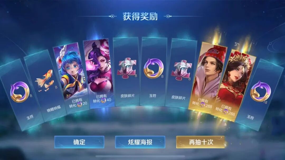 虽然说,这次的九尾祈愿,里面的道具奖励跟上次没什么区别。但是呢,有一点是有所不同的,那就是上次玩家能抽到98个玉符,而这次则是直接删除了。不过呢,王者荣耀玩家在进入九尾祈愿之后,每天还是能领取1个玉符的,毕竟苍蝇肉也是肉啊。当然了,在妲己九尾返场才1天,王者荣耀就沦为比惨大会。同时呢,也有的玩家在进行九尾祈愿的时候,出现了欧皇附身的场景。没错,这位玩家在十连抽的时候,直接是抽到了四款皮肤,其中两款还是猴子的大圣娶亲和露娜的一生所爱。可以说,这次的十连抽跟抽到1个九尾令牌的性价比是一样的,简直是美滋滋。