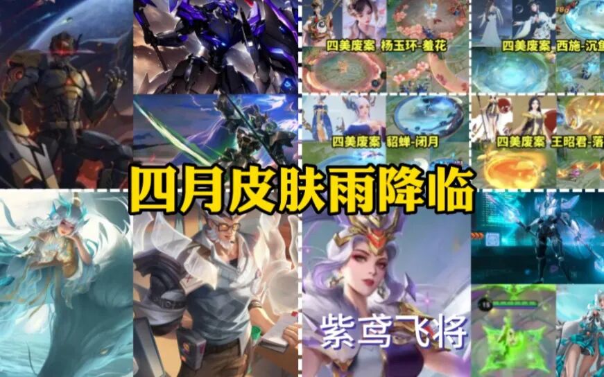 王者荣耀四月份皮肤雨来袭,除了上述说到的桑启皮肤和盘古的经纬探寻者之外,还有几款新皮肤即将上线哦。其中,黄忠的末日机甲,韩信的次元突破以及蒙恬的新机甲皮肤,都在计划中。另外,王者荣耀曾经的四美皮肤,虽然已经成为废案,但是在最近又传出要重新上架的消息。毕竟,王者荣耀四美皮肤方案,已经在很久之前就提出了,就连五虎将都上架了,相信四美也不会远了吧。至于星传说方面,花木兰的冠军飞将皮肤,将迎来首款星传说紫鸢飞将哦。同时,貂蝉的曦玄引也是有一款星传说要登场的哈,所以要准备好足够的点券哦。