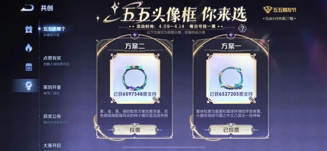 没错,王者荣耀55活动预热开启,首先是迎来了五五朋友节的专属头像框票选方案。相信玩家们都发现了,今年的55头像框投票是比较平均的,最终是方案一还是方案二获得冠军,现在还不好说哦。