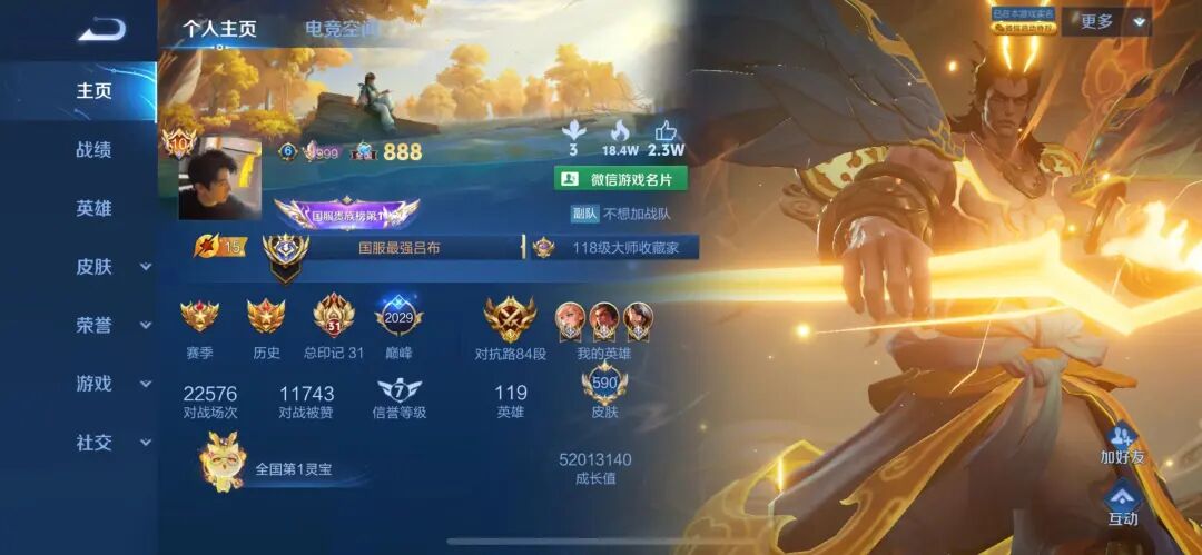 众所周知,无论是在哪款游戏中,能够氪金的玩家实力自然是低不到哪里去的,王者荣耀也是一样。可以看到,这位贵族V10的富婆玩家,已经在王者荣耀中囊括了各项第一。比如说是全国贵族积分的第一名,还有就是全国第一灵宝,累充了50W左右啊。